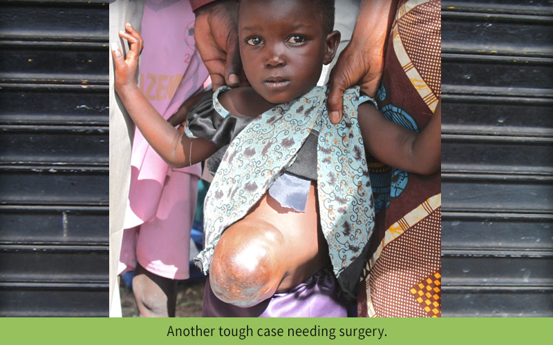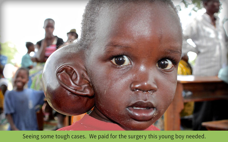 N’dogo is an example of cases we find in underserved villages. We found a local surgeon and paid for his surgery. General clinics are often held in villages which have no health station. We always work with local providers as to not create a dependency on American teams.